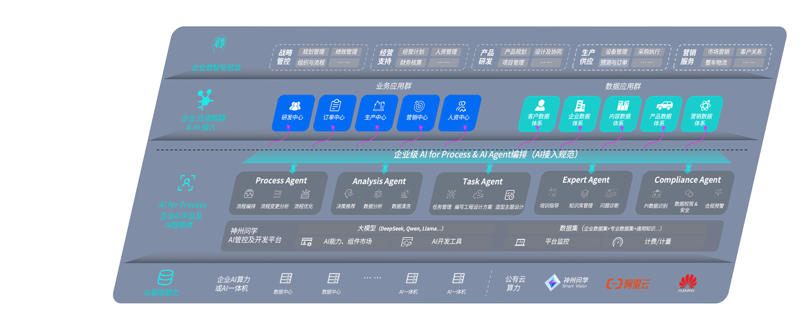 多彩网问学智车解决方案是一套基于AI技术的汽车行业智能化系统,,,覆盖从底层算力到顶层AI应用的全栈方案。。方案由算力层、、模型层和应用层组成:算力层,,方案支持多种一体机配置,,,具备云端灵活部署、、、、多云适配以及动态优化计算资源的能力;模型层,,多彩网问学平台版提供了企业级AI应用一站式构建与管理平台,,,支持基于后训练强化技术的汽车企业专属模型的训练、、评测和运营;应用层,,,多彩网问学DeepSeek版提供包括超级员工、、、智能招采、、智能营销、、、智能客服、、AI for BI等一系列解决方案,,,,可助力汽车行业实现数字化转型,,让管理更智能、、响应更敏捷。。。